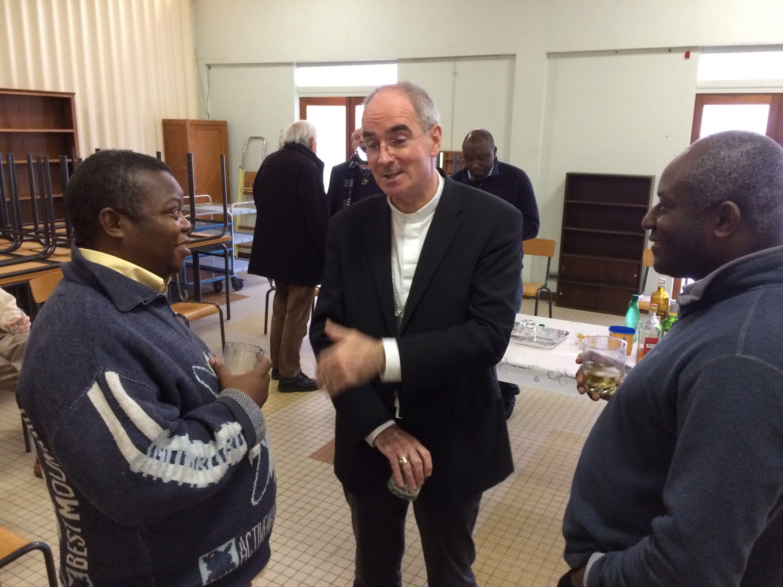 Ce déplacement du Conseil Provincial nous a valu la visite de Mgr Laurent Percerou accompagné de son Vicaire Général François Renaud à la maison des Naudières. Ce dernier connaît bien les Missions Africaines, il a été prêtre “fidei donum” au Bénin. Mgr Laurent a pu ainsi découvrir la plupart des membres sma présents dans son diocèse et partager avec eux le repas de midi.