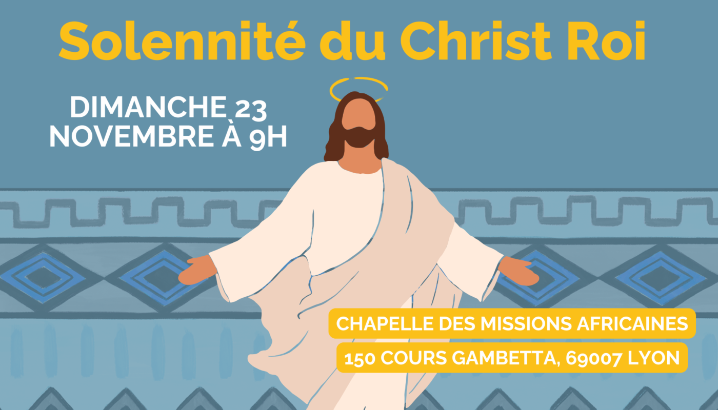 “Rassemblons-nous pour la solennité du Christ Roi ! Une célébration spéciale animée par les Missions Africaines vous attend le dimanche 23 novembre 2025 à 9h, à la Chapelle de la Maison Internationale Missionnaire (150 Cours Gambetta, 69007 Lyon). Venez nombreux célébrer notre foi en communauté !